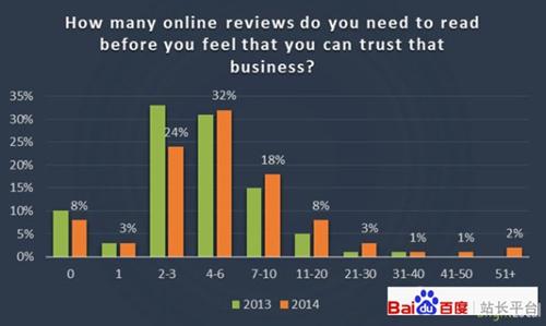 1、72%的消费者表示正面评价使他们信任加深(2013年的比例是73%)
